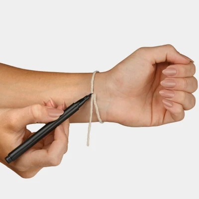 Posicione o barbante ou pedaço de linha ao redor do seu pulso e marque com uma caneta um tamanho que você considere confortável.
