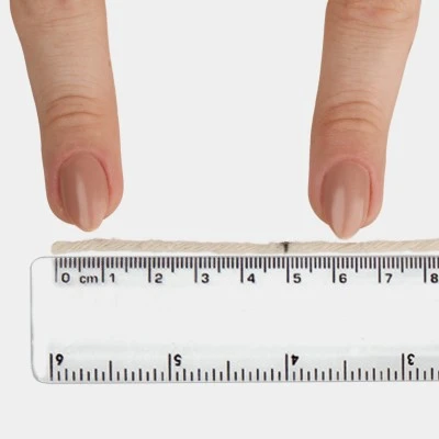 Após ter marcado com uma caneta o tamanho desejado, é só medir o comprimento do barbante com uma régua e pronto, o tamanho em centímetros do barbante será o seu tamanho ideal de pulseira.