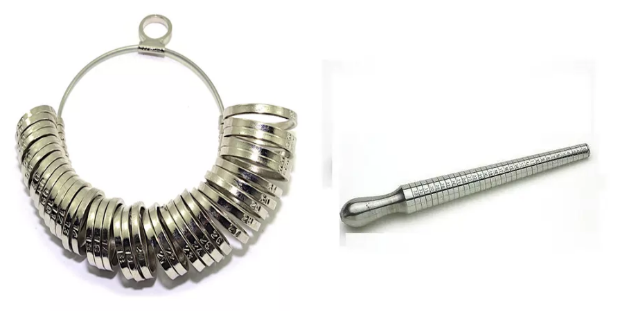 Existem duas maneiras principais de determinar o tamanho de anéis e alianças: o pau medidor e a aneleira. Ambos são facilmente encontrados em qualquer joalheria. O pau medidor utiliza anéis para identificar o tamanho, Pegue um anel que fique bem confortável no seu dedo, ou da pessoa que receberá o presente e sem forçar insira esse anel no medidor, pronto esse é o seu número. Enquanto a aneleira permite descobrir o tamanho medindo diretamente o dedo.